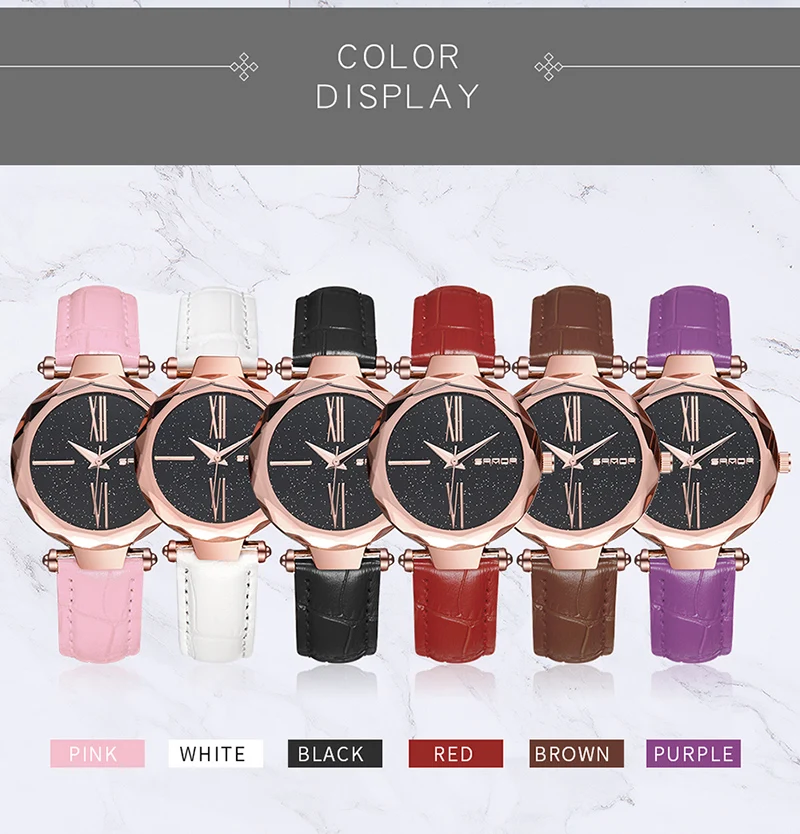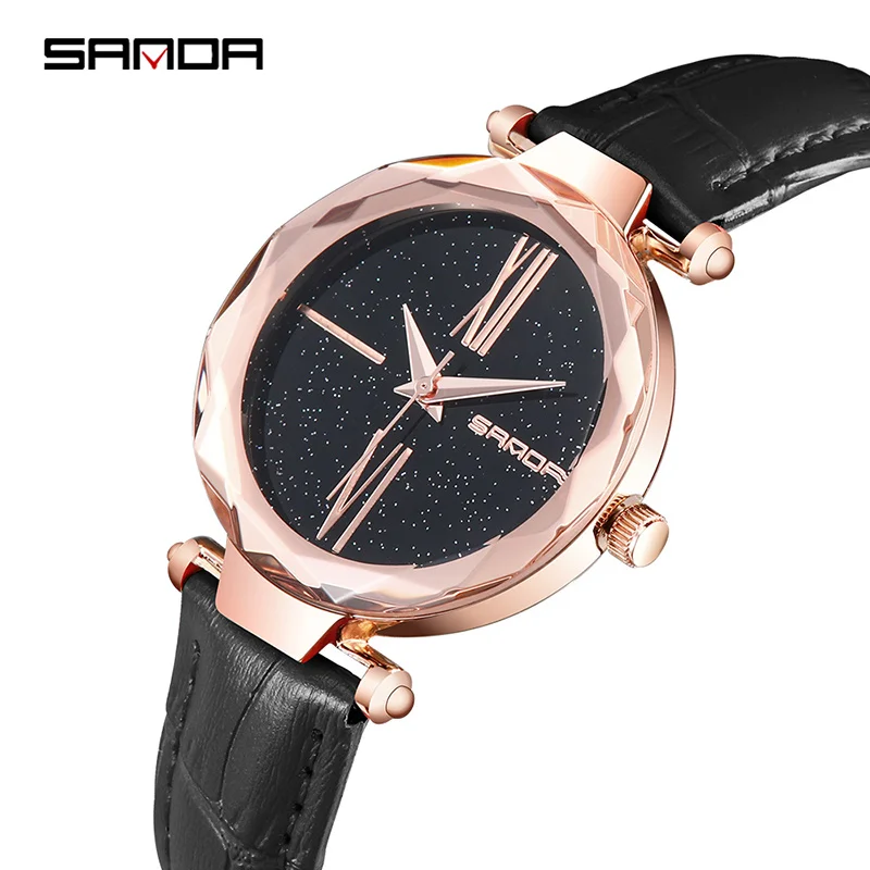 SANDA Black Luxury PU Leather Strap Women's Quartz Watch Brand Business Casual Clock Ladies Wrist W
