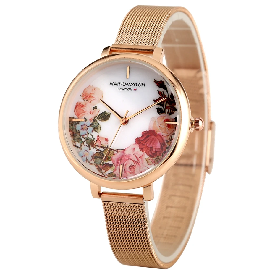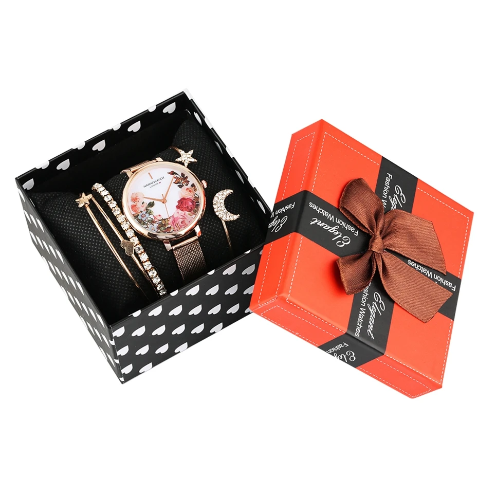 BEST 6pc/Set Watch Bracelet Sets Women's Flower Print Diamond Dial Quartz Beauty Watches Multilayer Heat